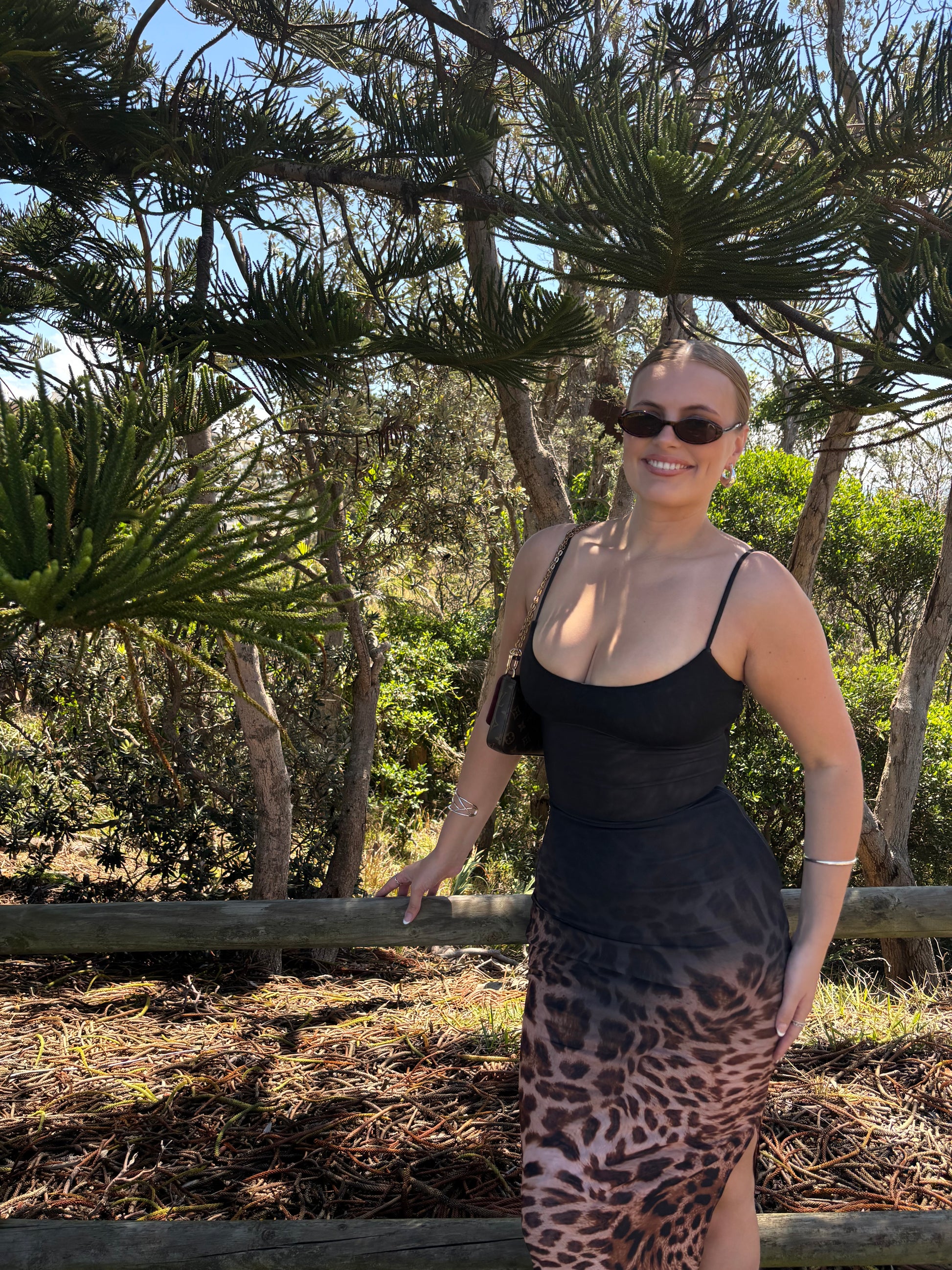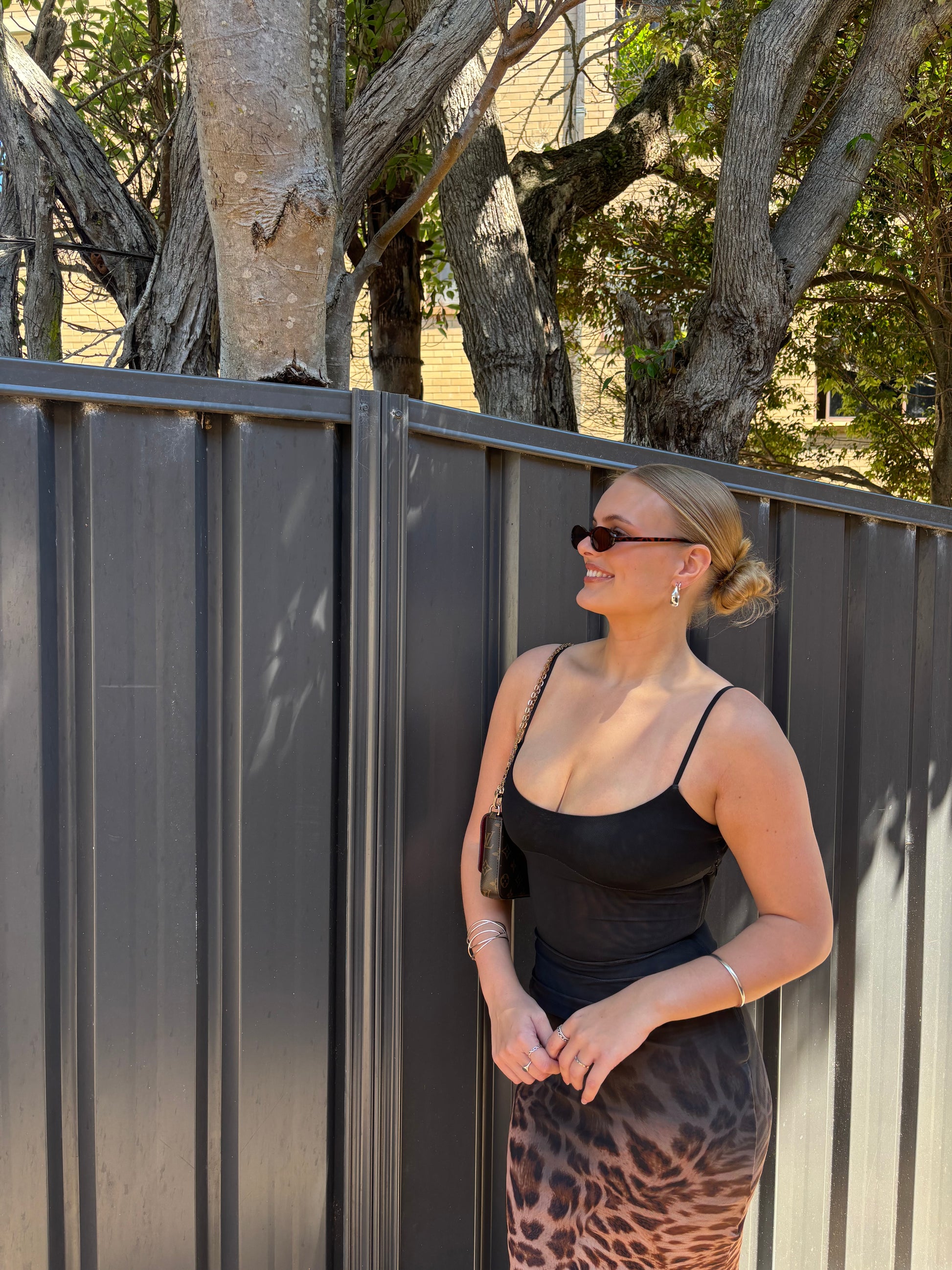 Our best-selling silhouette is back and ready to steal the show this season! Our sculpting Blair Midi Dress is expertly crafted from two layers of heavy weight powermesh, to cinch your waist and accentuate your curves. A curved underbust seam provides extra shaping for the most flattering fit, while adjustable straps and a side zipper allow for extra comfort and versatility. Our ombre leopard print has been designed to flatter every body type, black mesh slowly blends down from the bust into statement leopard print at the hem; designed to turn heads.