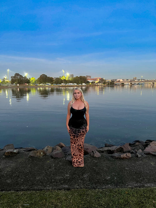 Our best-selling silhouette is back and ready to steal the show this season! Our sculpting Blair Midi Dress is expertly crafted from two layers of heavy weight powermesh, to cinch your waist and accentuate your curves. A curved underbust seam provides extra shaping for the most flattering fit, while adjustable straps and a side zipper allow for extra comfort and versatility. Our ombre leopard print has been designed to flatter every body type, black mesh slowly blends down from the bust into statement leopard print at the hem; designed to turn heads.