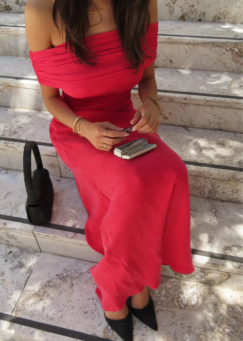 HOW THE BENNI Nico Off Shoulder Maxi Dress - Watermelon IS BEING WORN