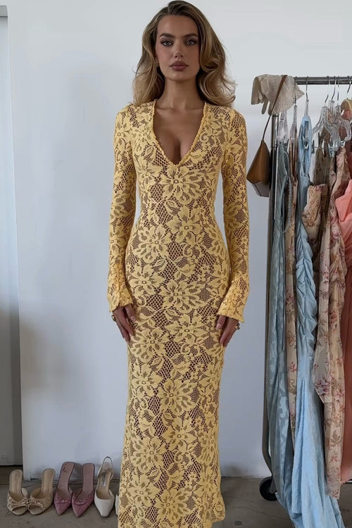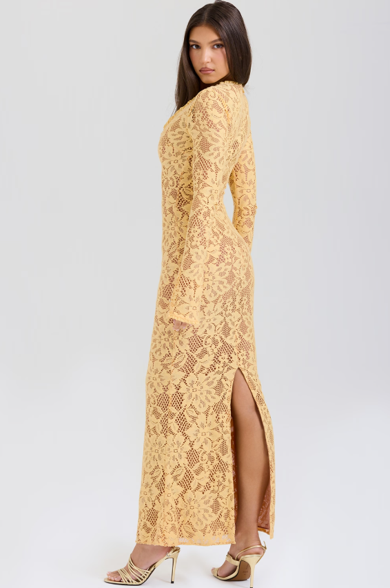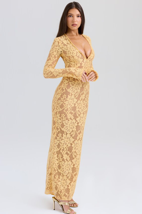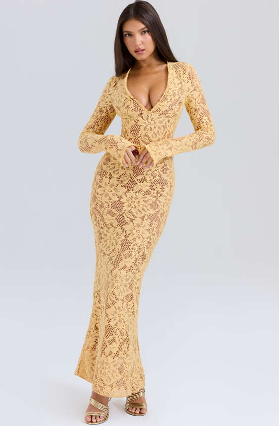 HOW THE HOUSE OF CB Indiana Apricot Plunge Lace Maxi Dress IS BEING WORN