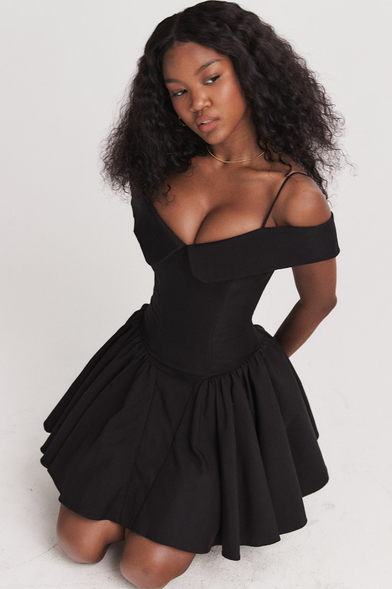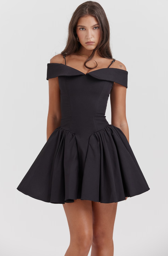 HOW THE HOUSE OF CB Elida Black Off Shoulder Mini Dress IS BEING WORN